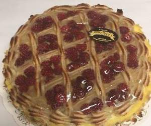 Mördegsbotten med fyllning av vaniljkräm och hallonsylt. Garneras med valfritt smörkräm, marsipan, grädde, frukt.