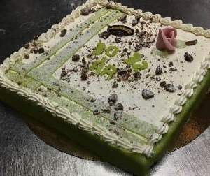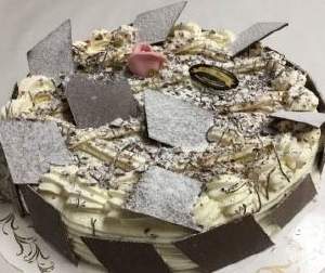 Marängbotten och sockerkaksbotten med fyllning av banan och grädde. Garneras med marsipan, kan även beställas utan marsipan. *Går att göra laktosfri och eller glutenfri.